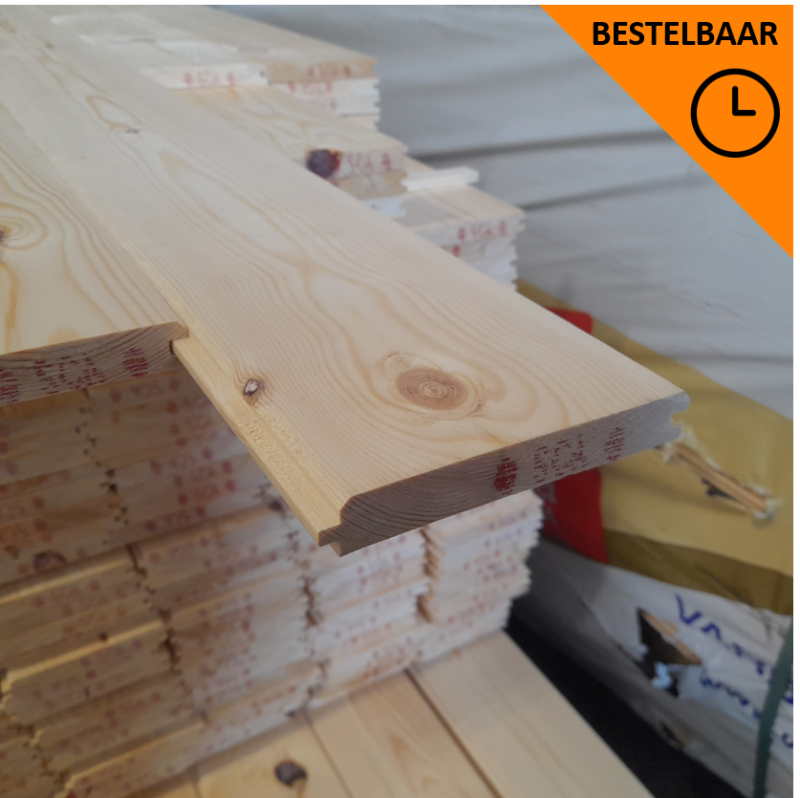 Grenen vloerdelen met vellingkant. Geschikt voor het maken van een vloer, dak, aftimmering, etc. binnenshuis.