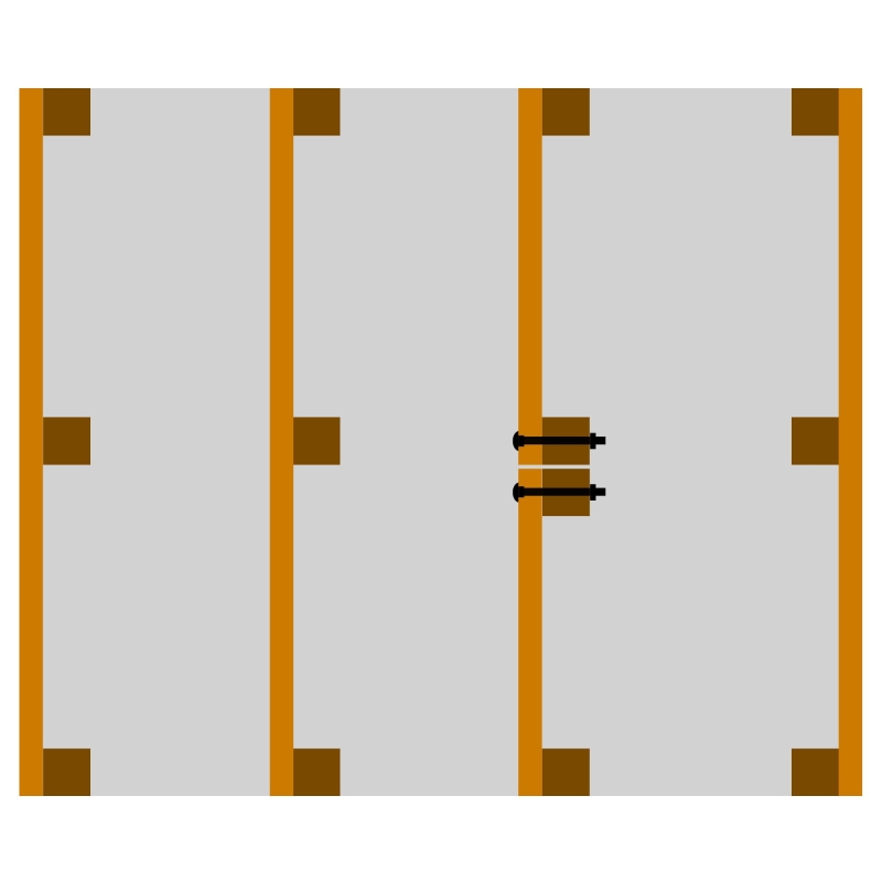 Wanneer je meerdere vlonderplanken achter elkaar wilt plaatsen kun je dit doen door twee vlonderplanken op één regel uit te laten komen. Wanneer dit krap is kun je op deze plekken eventueel een extra stukje regel monteren, zodat er meer ruimte is om deze vast te schroeven.