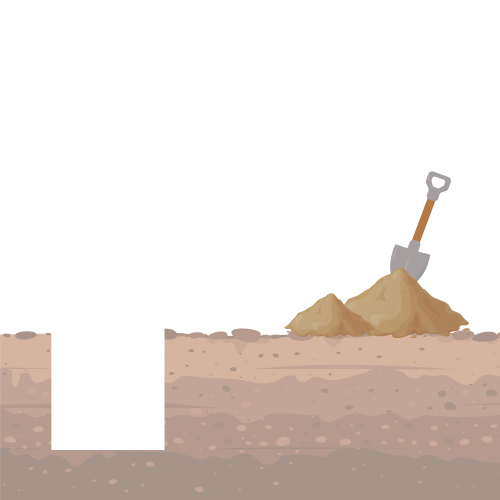 3. Gat gravenGraaf nu de gaten op de juiste positie. Het is handig om de gaten iets groter te maken dan de betonpoer zelf, zodat je deze nog kunt verschuiven. Afhankelijk van de gewenste hoogte zijn gaten van 50 tot 60 cm diep meestal voldoende.