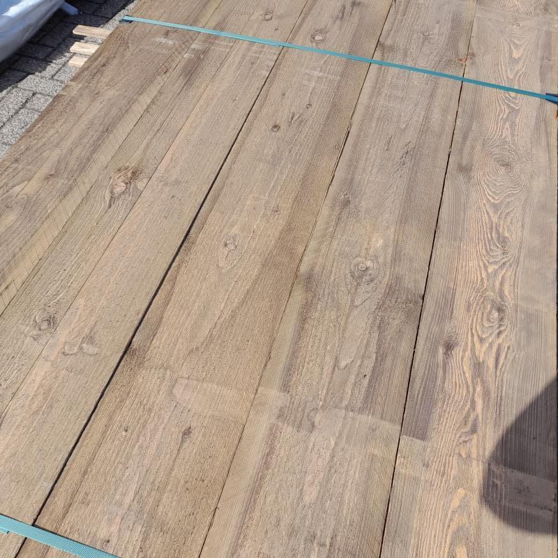 Deze nieuwe steigerplanken zijn vergrijsd, waardoor ze een "oude look" hebben.